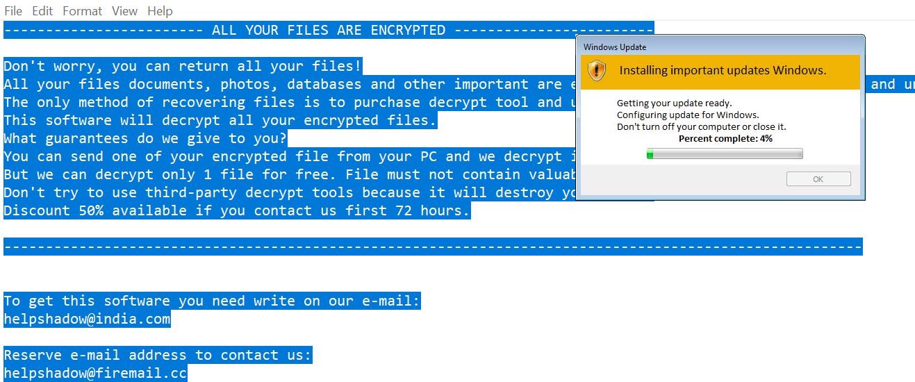 El Virus DJVU (Ransomware) - ¿Como eliminarlo? 26 marzo, 2019 By Giedrius Majauskas El Ransomware DJVU es una familia de parásitos relativamente nueva que se distribuye a través de adjuntos infectados en emails y vulnerabilidades del sistema. Si su proveedor de emails no escanea los archivos adjuntos en busca de malware, podría ver emails con varias “facturas”, “ofertas” o información sobre los paquetes de DHL/FedEx que no han podido ser entregados en su dirección. Los asuntos de esos emails suelen ser inventados, es porque no han sido enviados por los dueños de los emails por los que se hacen pasar. El Virus Djvu Ransomware quicklinksCómo identificar a la familia de malware DJVUCómo y qué ha sido encriptado por DJVUDebería pagar poa la desencriptación de DJVUCómo eliminar la infección DJVU e intentar recuperar los archivos usted mismoHerramientas de extracción Malware automática¿Cómo eliminar El Virus DJVU (Ransomware) usando Restauración del Sistema?1. Reinicie su ordenador en Modo Seguro con Solicitud de Comando1. Modo seguro2. Restaurar archivos y configuraciones del Sistema.2. Complete la eliminación del Stopransom ransomware3. Restaure los archivos afectados por El Virus DJVU (Ransomware) usando Shadow Volume Copies Descargar Spyhunter(Win) Nota: Ensayo Spyhunter proporciona la detección de parásitos como El Virus DJVU (Ransomware) y ayuda a su eliminación de forma gratuita. versión de prueba limitada es disponible, Terms of use, Privacy Policy, Uninstall Instructions, Descargar Combo Cleaner(Mac) Nota: Ensayo Combo Cleaner proporciona la detección de parásitos como El Virus DJVU (Ransomware) y ayuda a su eliminación de forma gratuita. versión de prueba limitada es disponible, Si abre ese tipo de archivos, su PC se infecta y con ello sus archivos se infectan. Esto se hace en segundo plano, ya que no es un proceso extremadamente rápido. En la mayoría de los casos, el ordenador infectado no tiene un antivirus actualizado que evitaría que ocurriesen ese tipo de infecciones. Hay muchas herramientas anti-ransomware que pueden detectar el comienzo de la encriptación y bloquear el proceso. Otra posibilidad es la conexión a redes de ordenadores sin proteger infectados con gusanos. Incluso aunque este método fue usado por el parásito Wannacry, otros ransomwares incluyendo DJVU también usan varios exploits o intentan realizar fuerza bruta a contraseñas a través de las redes. La tercera posibilidad es una web de cracks. DJVU (llamado, .tro y .churk por algunas variantes) es conocido por distribuirse a través de la herramienta crack KMSpico para Windows. Si instala e intenta crackear Microsoft Office, se arriesga a infectase. Lo mejor es usar alternativas gratuitas como office. Cómo identificar a la familia de malware DJVU La primera campaña de rescates de DJVU se publicó a mediados de Diciembre de 2018, y muchas otras versiones nuevas de este malware fueron publicándose tras ese momento. Se diferencian en las extensiones, el archivo de información y los emails para contactar con los creadores del malware, sin embargo, la nota de rescate sigue igual: ¡No se preocupe, puede recuperar todos sus archivos! Todos sus archivos de documentos, fotografías, bases de datos y otros importantes han sido encriptados con la encriptación más potente y una clave única. El único método para recuperar los archivos es comprar la herramienta de desencriptación y una clave única para usted. Este software desencriptará todos sus archivos encriptados. ¿Qué le garantiza que se lo vamos a dar? Puede enviar uno de sus archivos encriptados de su PC y lo desencriptaremos de manera gratuita. Pero solo podemos desencriptar 1 archivo gratos. El archivo no debe contener información valiosa. No intente usar herramientas de desencriptación de terceras partes porque podría destruir sus archivos. Descuento del 50% disponible si contacta con nosotros en las primeras 72 horas. ——————————————————————————————————- Para conseguir este software tiene que escribirnos a nuestro e-mail: [email protected] Dirección email de reserva para contactar con nosotros: [email protected] Su ID personal: xxxxxxxxxxxxxxxxxxxxxxxxxxxxxxxxxxxxxxxxxxxxxxxxxxxxxx La primera parte del nombre del email normalmente es el mismo para ambos y cuando se cierra una, la nueva versión de DJVU se publica con cambios en las notas. El ransomware DJVU original usaba el nombre .djvu (o sus versiones) en las extensiones de archivos encriptados (por ello el nombre de la familia del parásito). Existen algunas diferencias ortográficas: .djvuu, .djvuq, .udjvu, .djvut, .djvus, etc… Las versiones posteriores usan varias otras extensiones como .charck. Las instrucciones de eliminación se dejan en el archivo llamado _openme.txt o _readme.txt Cómo y qué ha sido encriptado por DJVU En ejecución, el malware DJVU contacta con el servidor de control con información sobre la máquina y descarga las claves públicas para encriptarla. Luego comienza a mostrar falsos popups de actualizaciones de Windows para justificar un uso significativo de recursos del ordenador. Además, podría crear una tarea programada para encriptar archivos adicionales más adelante. Este malware intenta encriptar todos los archivos que no le gustaría perder: documentos (.doc*, .odt, etc.), imágenes (.jpg, .png, .gif), vídeos (.mp4, .wma), archivos (.rar, .zip, etc). También podría encriptar archivos importantes, incluyendo las cripto carteras. Esto se hace para obligarle a pagar por la desencriptación, que podría costar entre 500 y 1000 USD en alguna criptodivisa, normalmente Bitcoins. Normalmente, los ransomware como DJVU usan tanto algoritmos de encriptación simétricos como asimétricos para encriptar todos los archivos del disco duro. Los archivos están encriptados usando en primer lugar una clave específica del ordenador y un algoritmo rápido. Despué