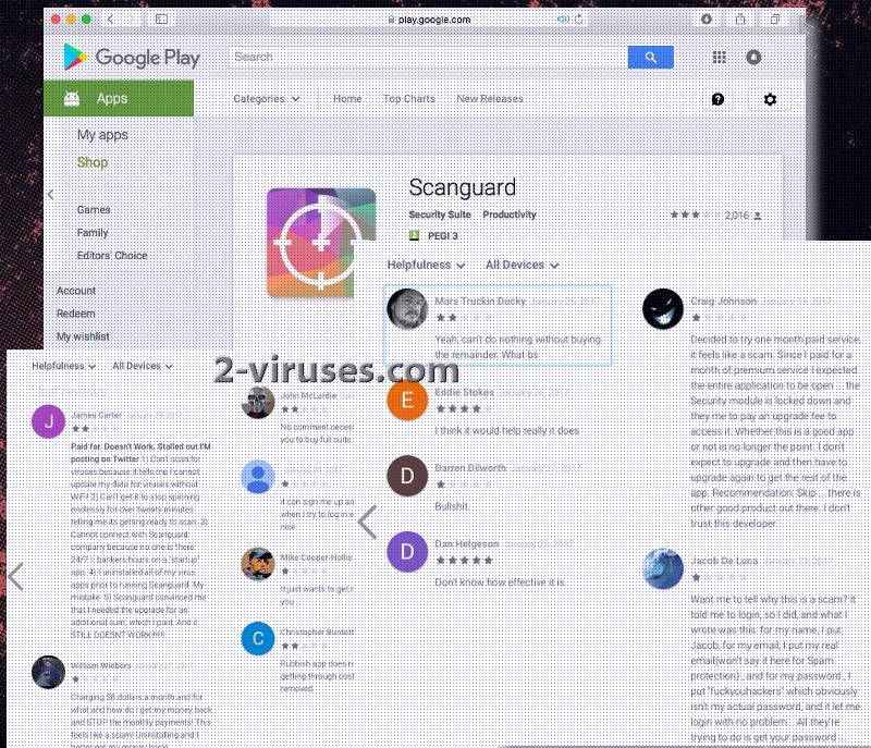 Aunque sea una estafa, no se debe asignar a esta categoría tan rápidamente. Los expertos necesitaron tiempo, valoraciones de los usuarios y más cosas para determinar si la aplicación ScanGuard era fiable o cuestionable. Sin embargo, este proceso no tardo tanto como pensábamos, ya que Internet parece estar inundado con valoraciones negativas de antiguos usuarios que fueron engañados para que descargasen el programa ScanGuard. Muchos de ellos dijeron haber instalado la aplicación de manera voluntaria, ya que las herramientas parecieron útiles. Sin embargo, los usuarios, rápidamente se dieron cuenta de que esta herramienta de seguridad sólo es gratis al principio: desde que empiezas a usarla, y probar sus herramientas, verás requisitos constantes para descargar la versión completa para poder continuar.